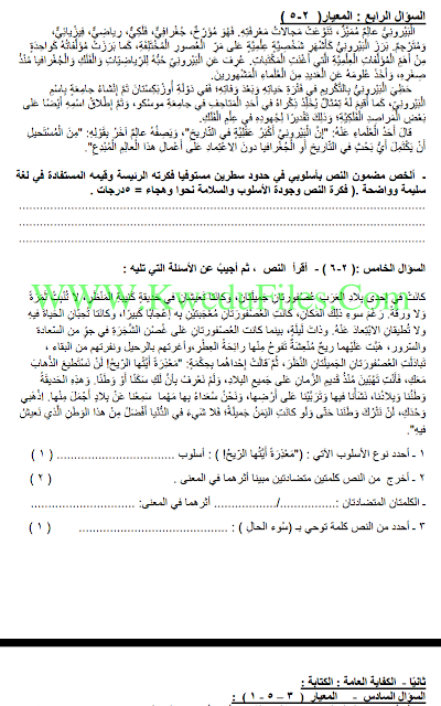 اختبارات تجريبية في مادة اللغة العربية للعام