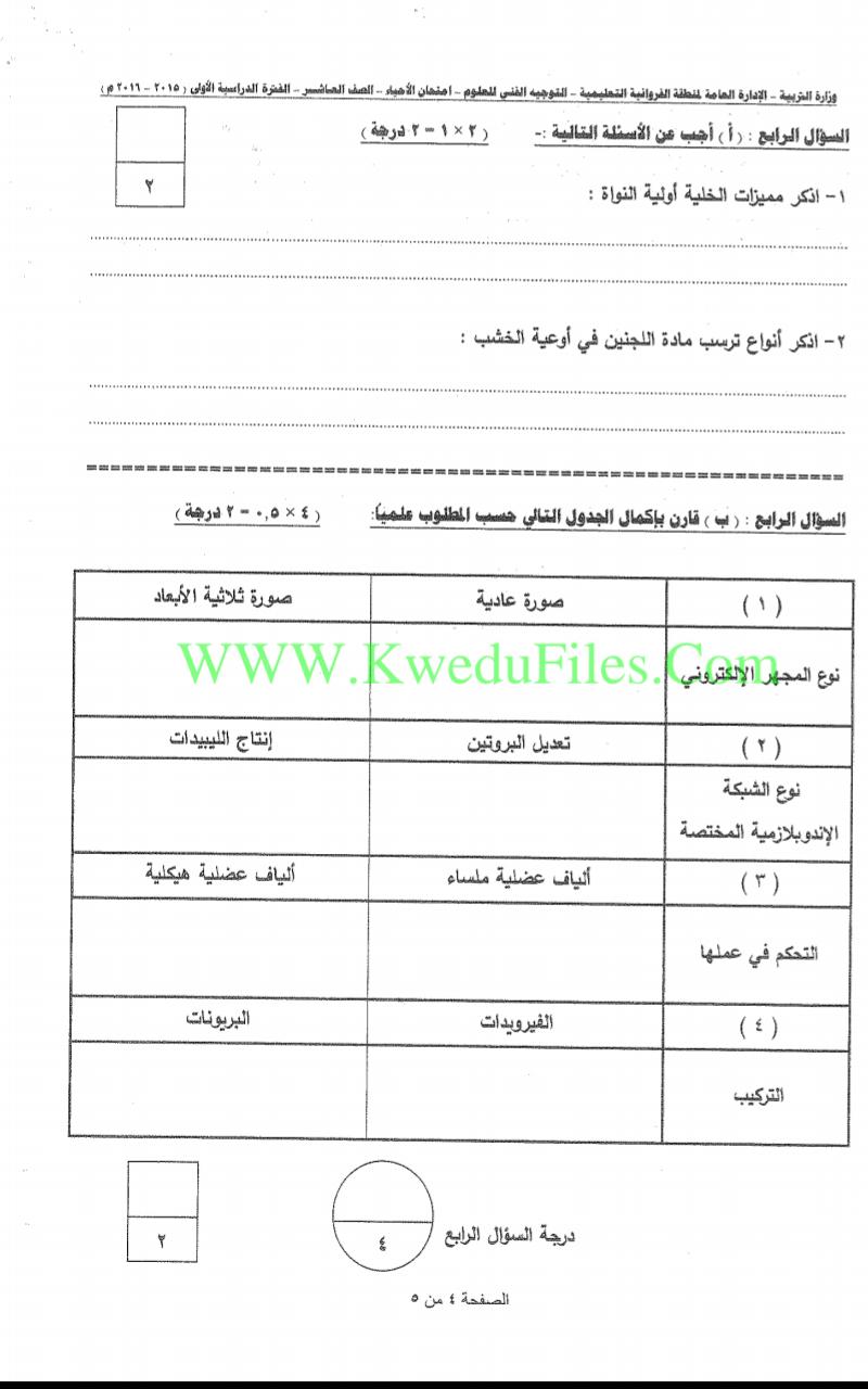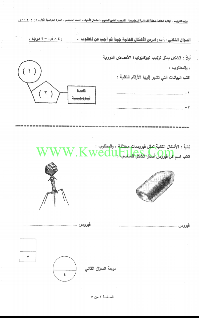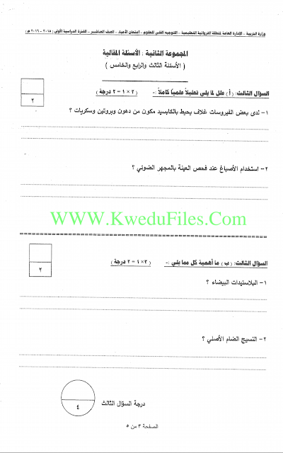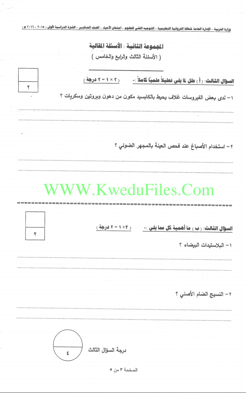 تم إيجاد الملف: اسئلة اختبارات واجاباتها النموذجية لسنوات سابقة 2015_2016في مادة الاحياء