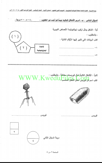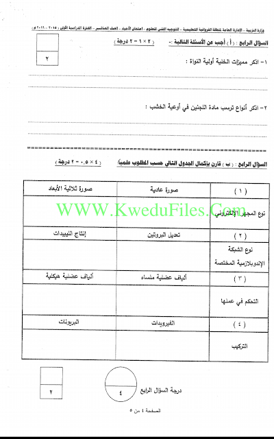 اسئلة اختبارات واجاباتها النموذجية لسنوات سابقة 2015_2016في مادة الاحياء - إعداد: ثانوية سلمان الفارسي