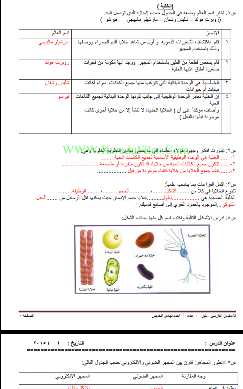 | مذكرة رائعة من الخلية الى الفيروسات في مادة العلوم | ||