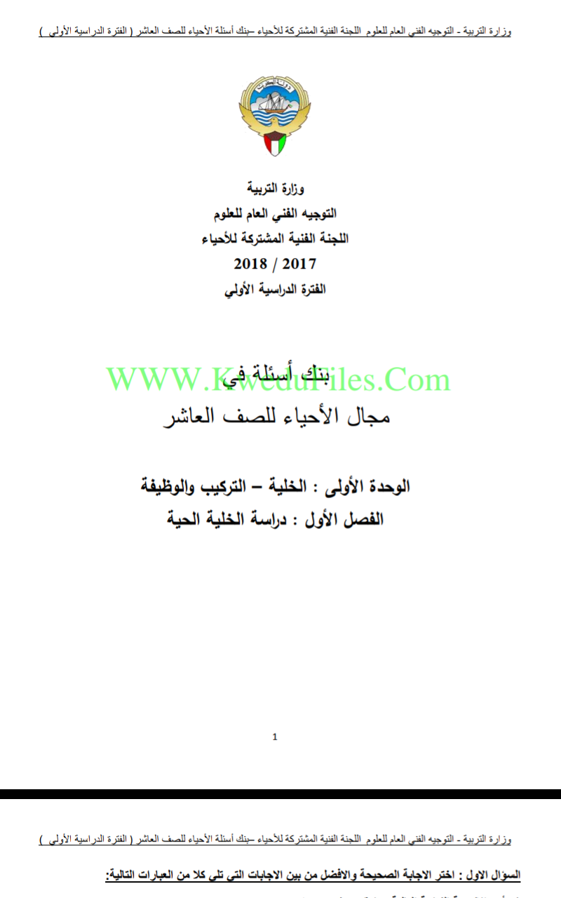 أحدث ملفات الصف العاشر, علوم, الفصل الأول