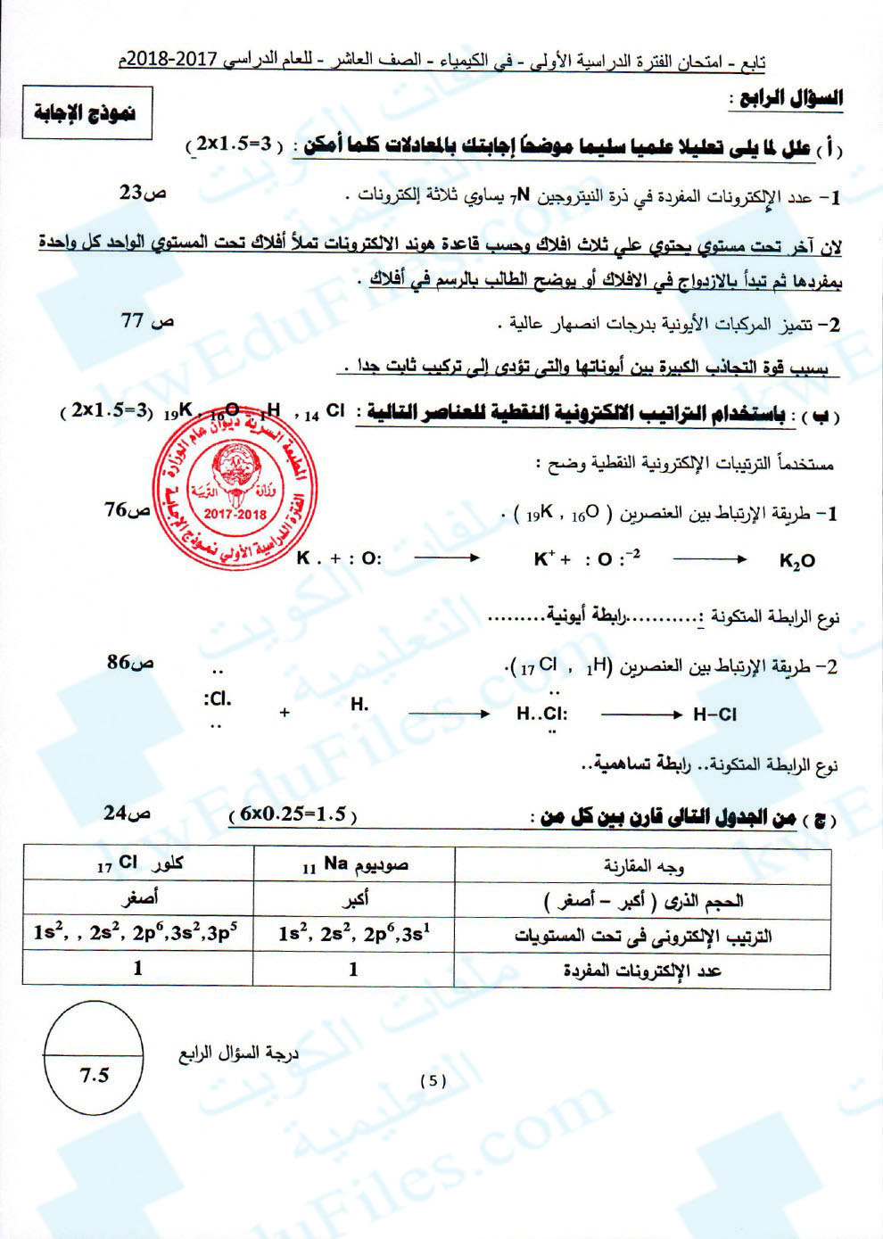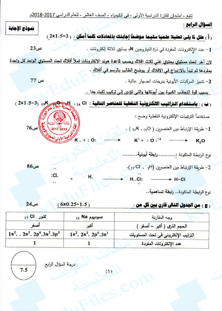 معلومات الملف: اليكم نموذج الاجابة لامتحان مادة الكيمياء للصف العاشر 2017-2018 | ||
