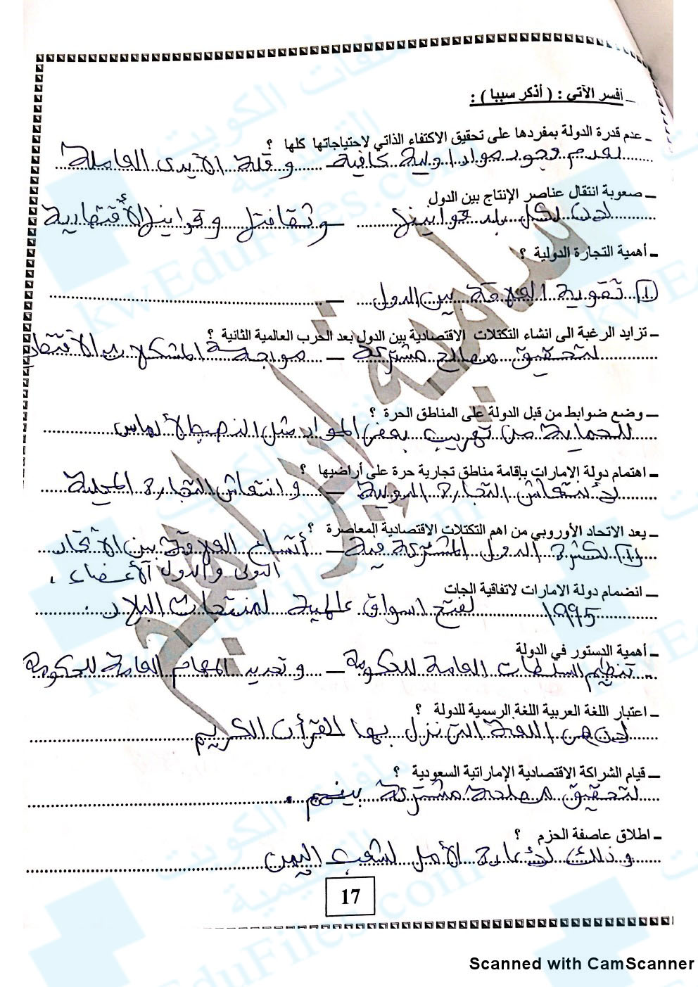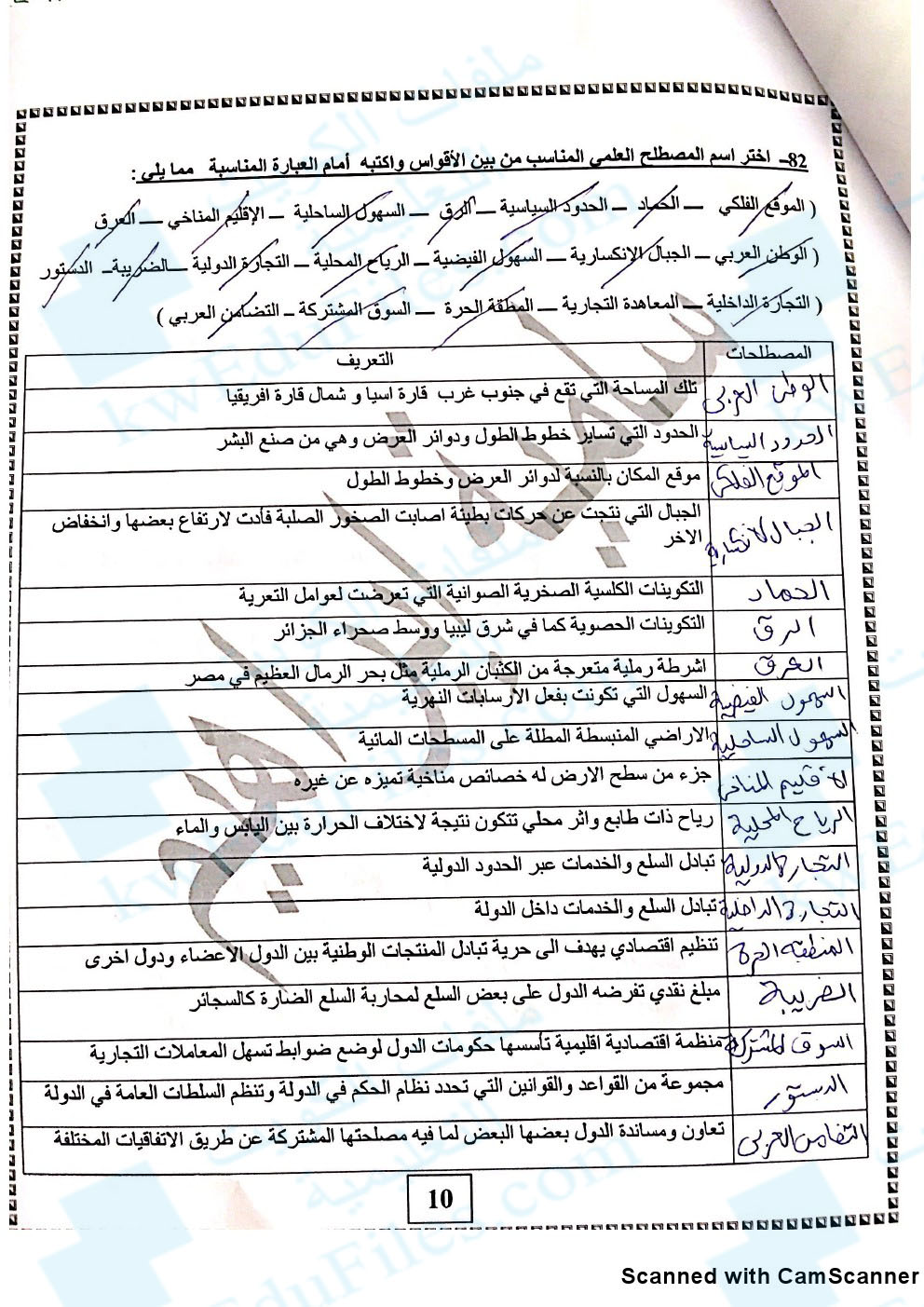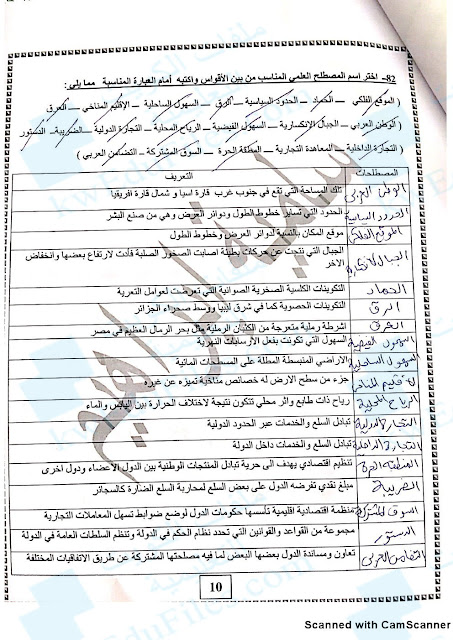 أسئلة الفصل الاول مع الاجابة 2018, الصف العاشر, جغرافيا, الفصل الأول, 2018-2019 - المناهج الكويتية