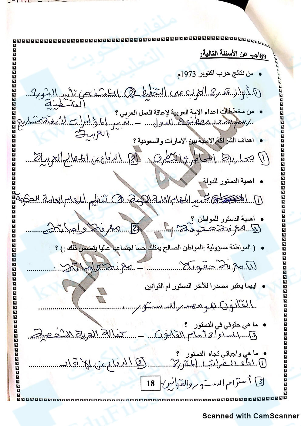 تم إيجاد الملف: أسئلة الفصل الاول مع الاجابة 2018