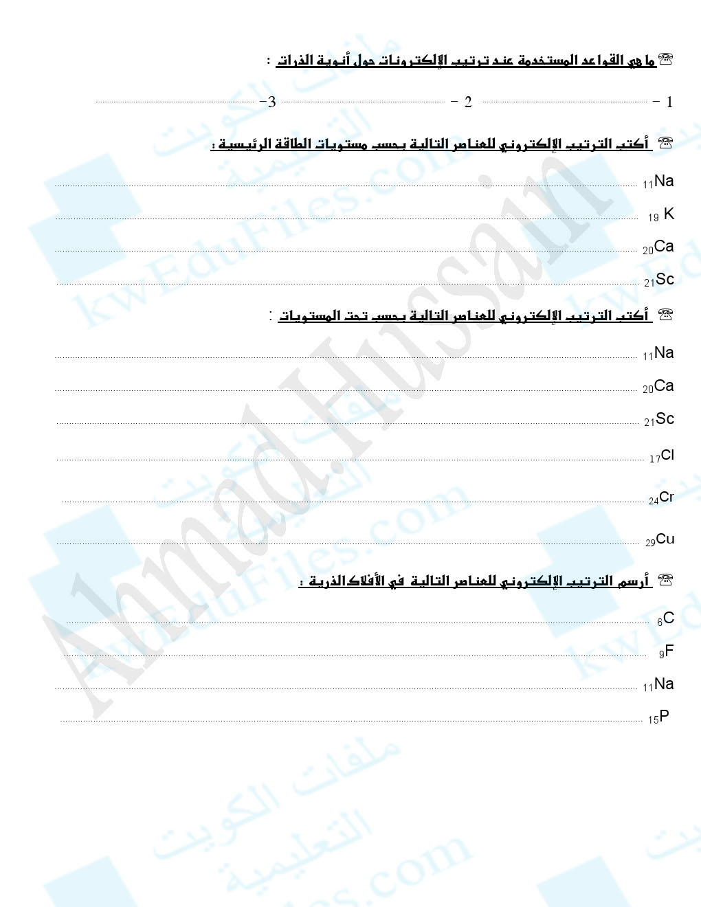 تم إيجاد الملف: ورقة تقويمية الالكترونات في الذرات