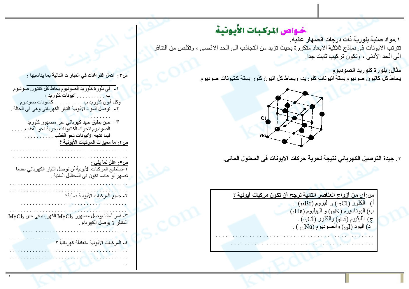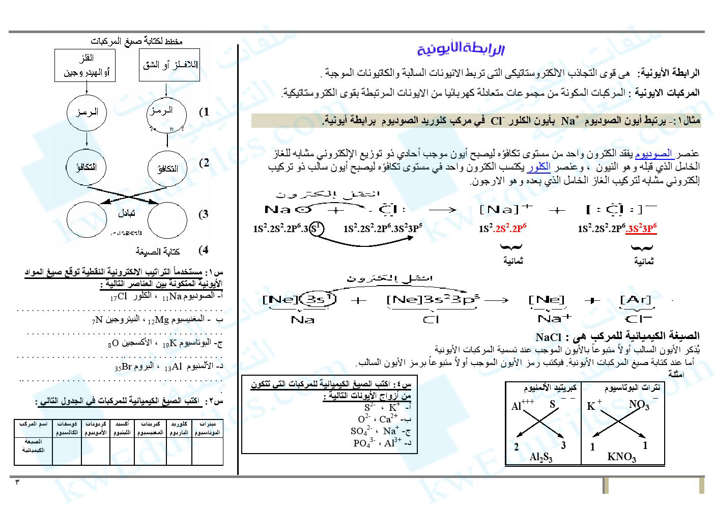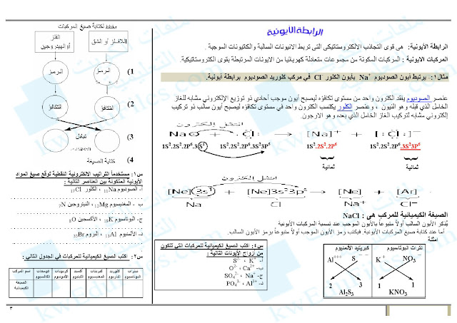تلخيص الوحدة الثانية مع اختبارات - الروابط الأيونية والتساهمية والتناسقية - الفصل الاول من العام الدراسي 2018-2019 وفق المنهاج الكويتي