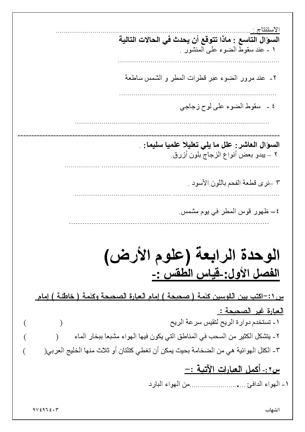 السابق: اوراق عمل رياضيات | الملف الحالي: 262 | التالي: كلمات الوحدة الأولى مع الترجمة |