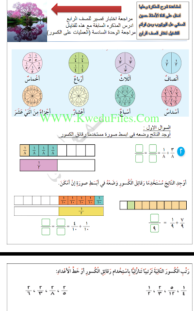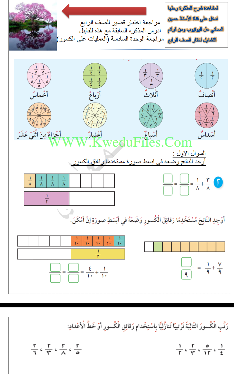 معلومات الملف: 7اوراق في مادة الرياضيات للصف الرابع للكورس الاول تتضمن اختبار الفاينل | ||