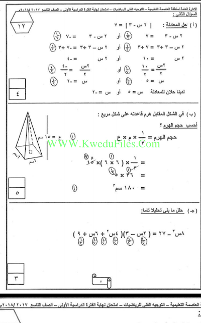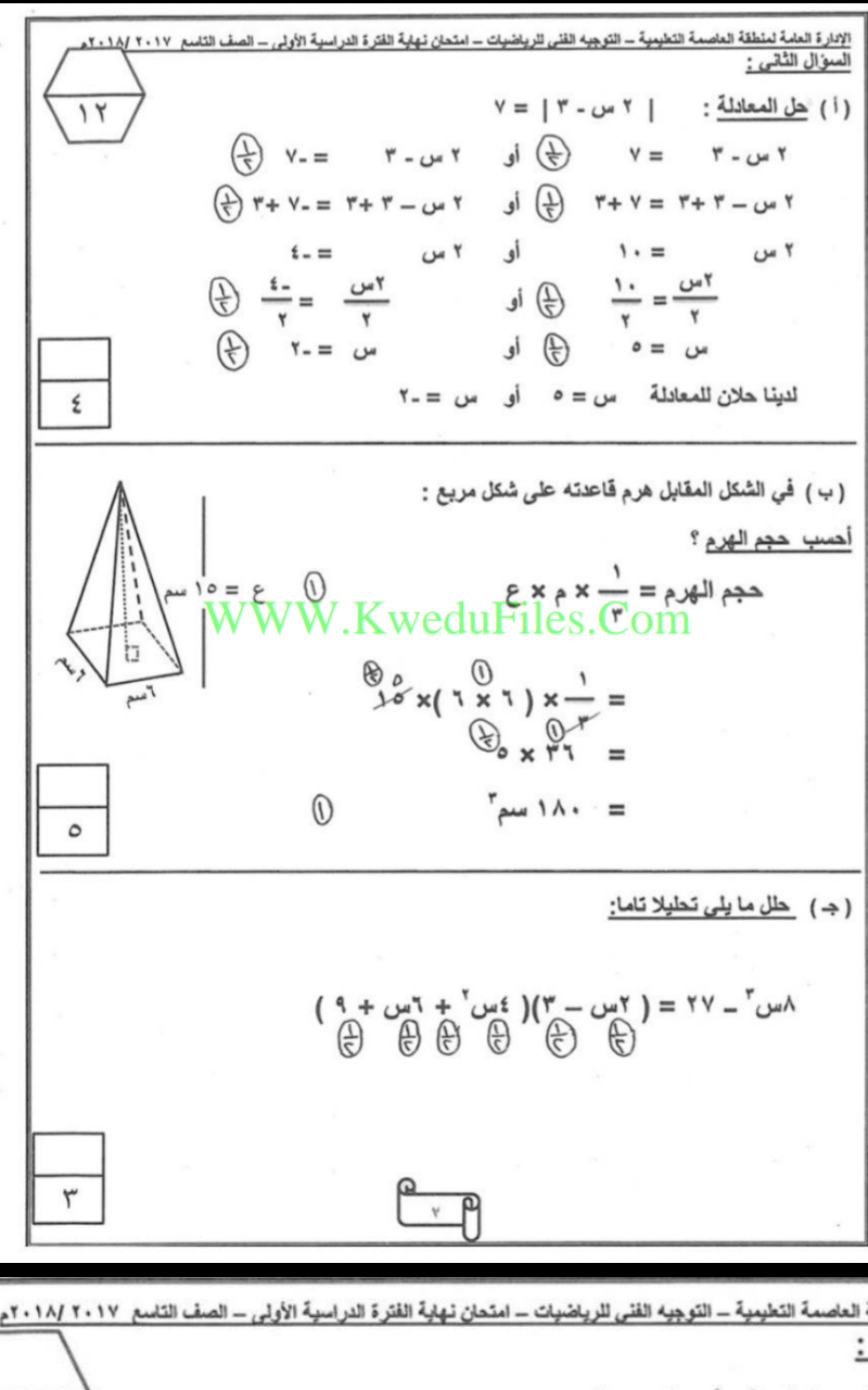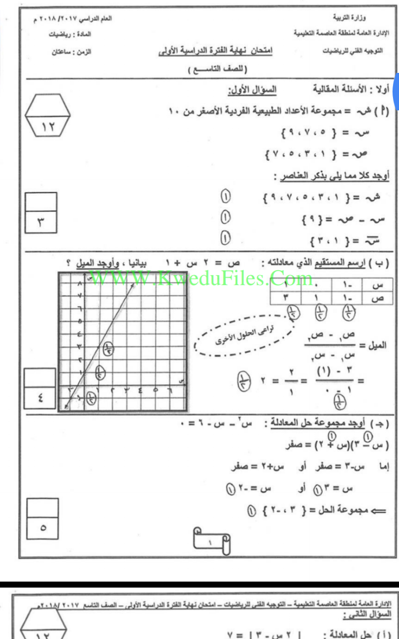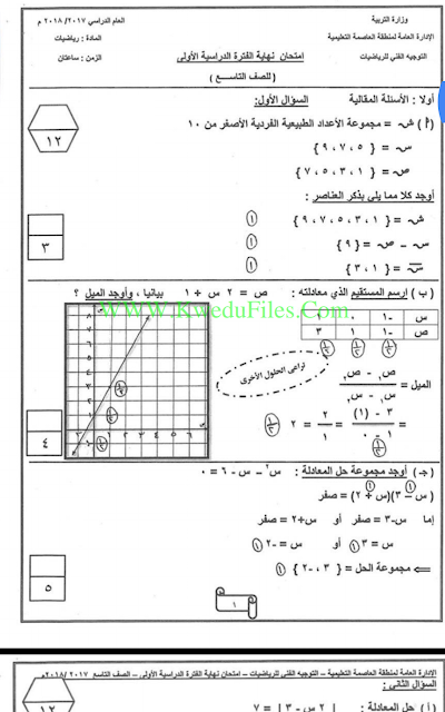 أنت هنا: موقع المناهجالمناهج الكويتية الصف التاسع رياضيات الفصل الأول الامتحان النهائي