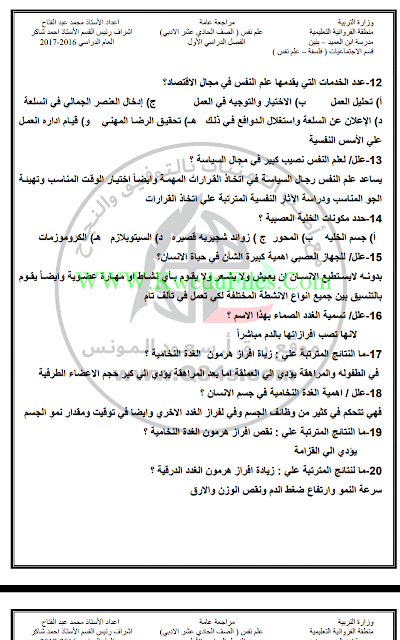 تم إيجاد الملف: مراجعة مهمة في مادة علم النفس لطلاب الحادي عشر الادبي