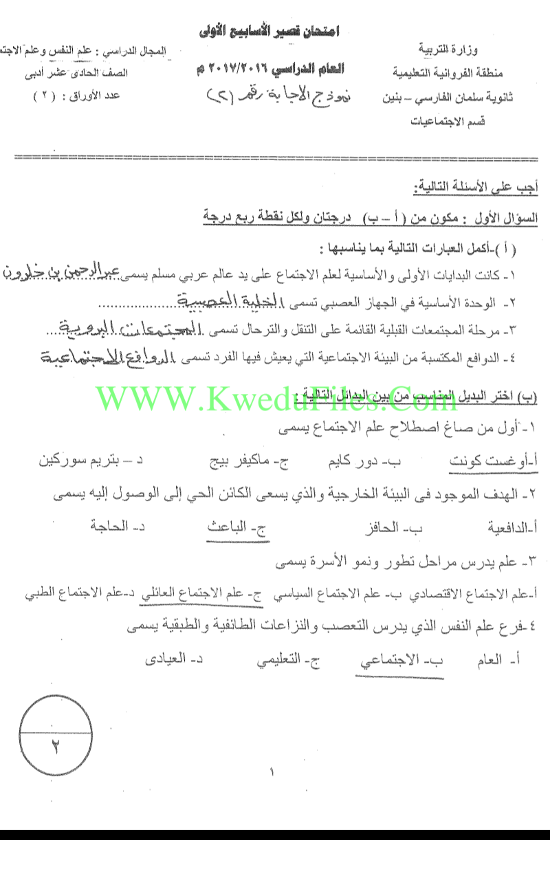 | أنت هنا: موقع المناهج ⇦ المناهج الكويتية ⇦ الصف الحادي عشر الأدبي ⇦ علم نفس واجتماع ⇦ الفصل الأول ⇦ الامتحان النهائي |