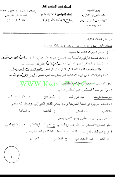 | نماذج اختبارات سلمان الفارسي في مادة علم النفس - إعداد: ثانوية سلمان الفارسي | ||