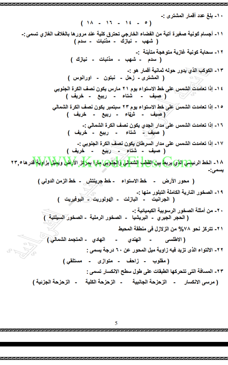 تم إيجاد الملف: بنك اسئلة الفترة الاولى في مادة الجغرافيا