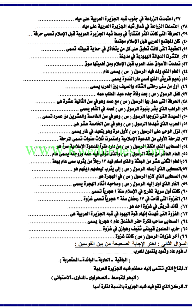 تم إيجاد الملف: بنك اسئلة مهم في مادة التاريخ