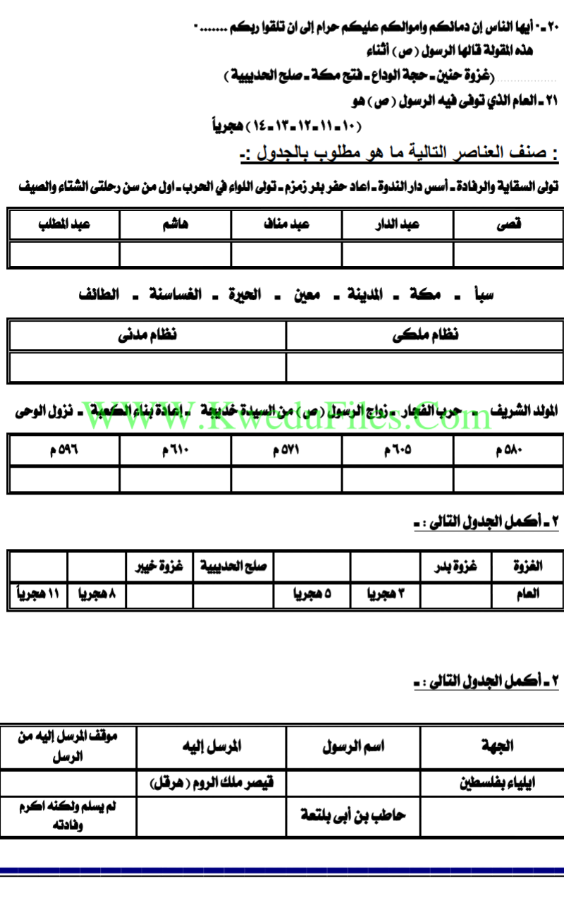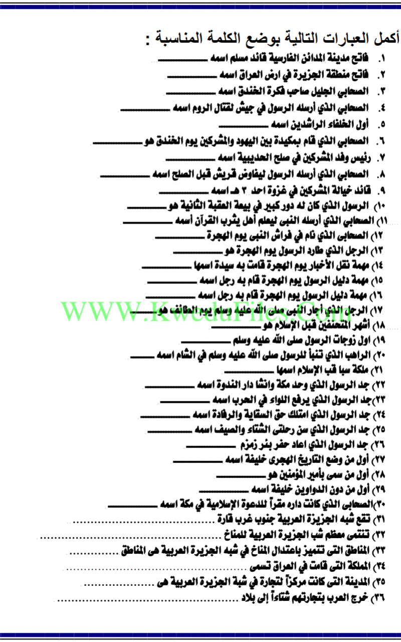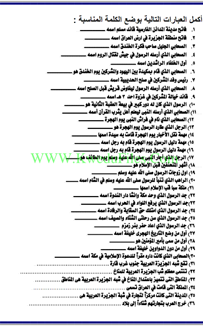 10. بنك الأسئلة المقرر للتاريخ الإسلامي
