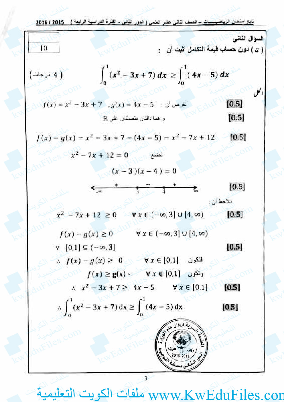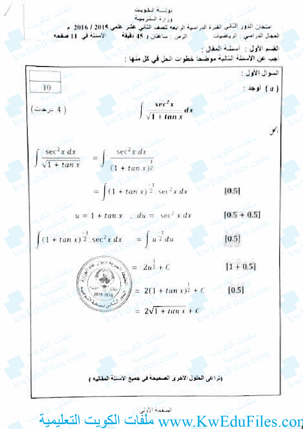 تم إيجاد الملف: نموذج اجابة امتجان 2015 2016