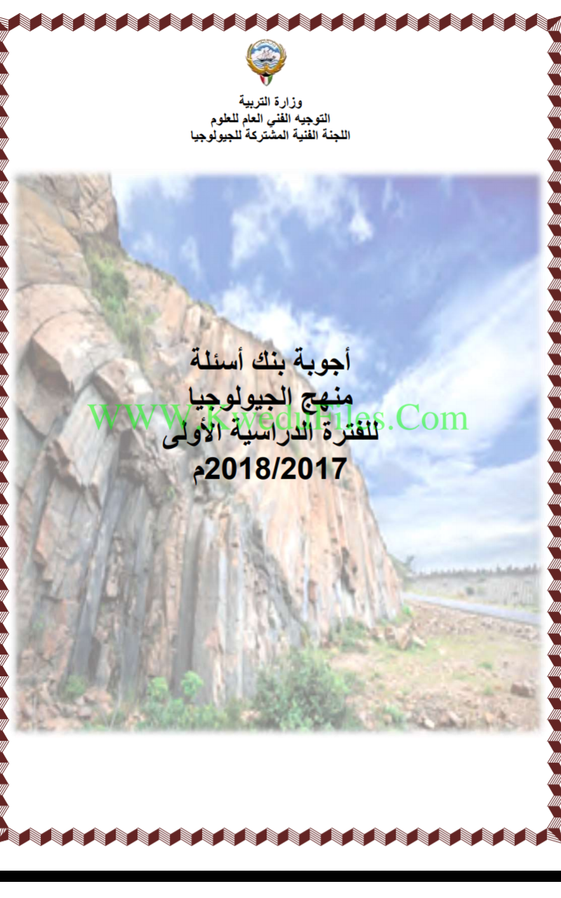 اجوبة بنك اسئلة الجيولوجيا للعام 2017_2018, التوجيه الفني العام للعلوم, الصف الحادي عشر العلمي, جيولوجيا, الفصل الأول, 2018-2019 - المناهج الكويتية