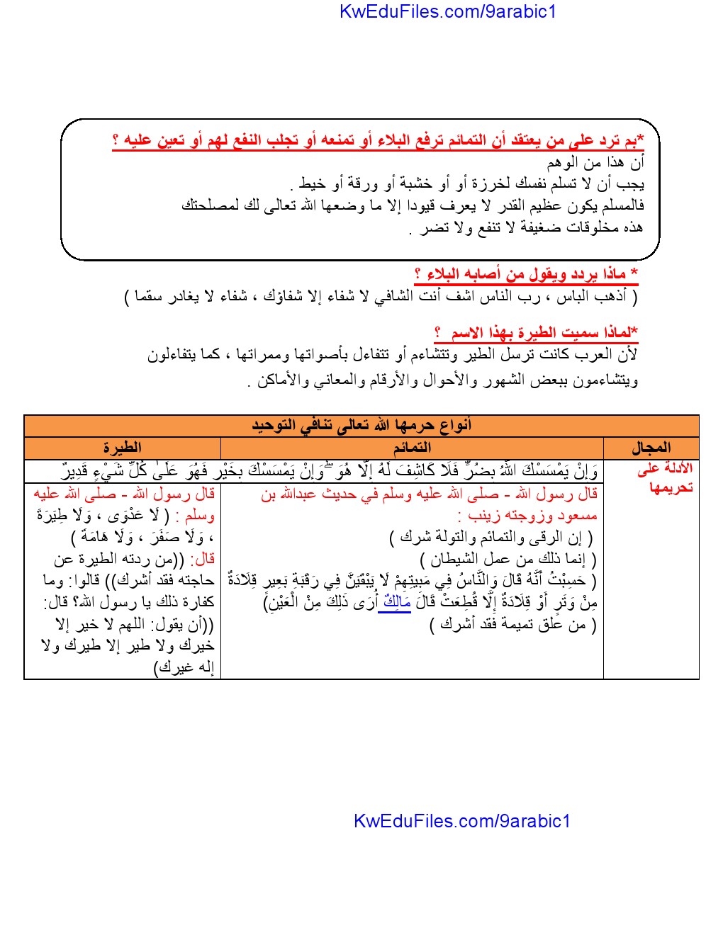 | الملاحظات المثبتة في المناهج الكويتية | |