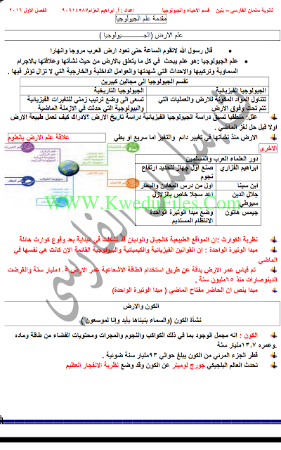 تلخيص لمادة الجيولوجيا - إعداد: ثانوية سلمان الفارسي | ||