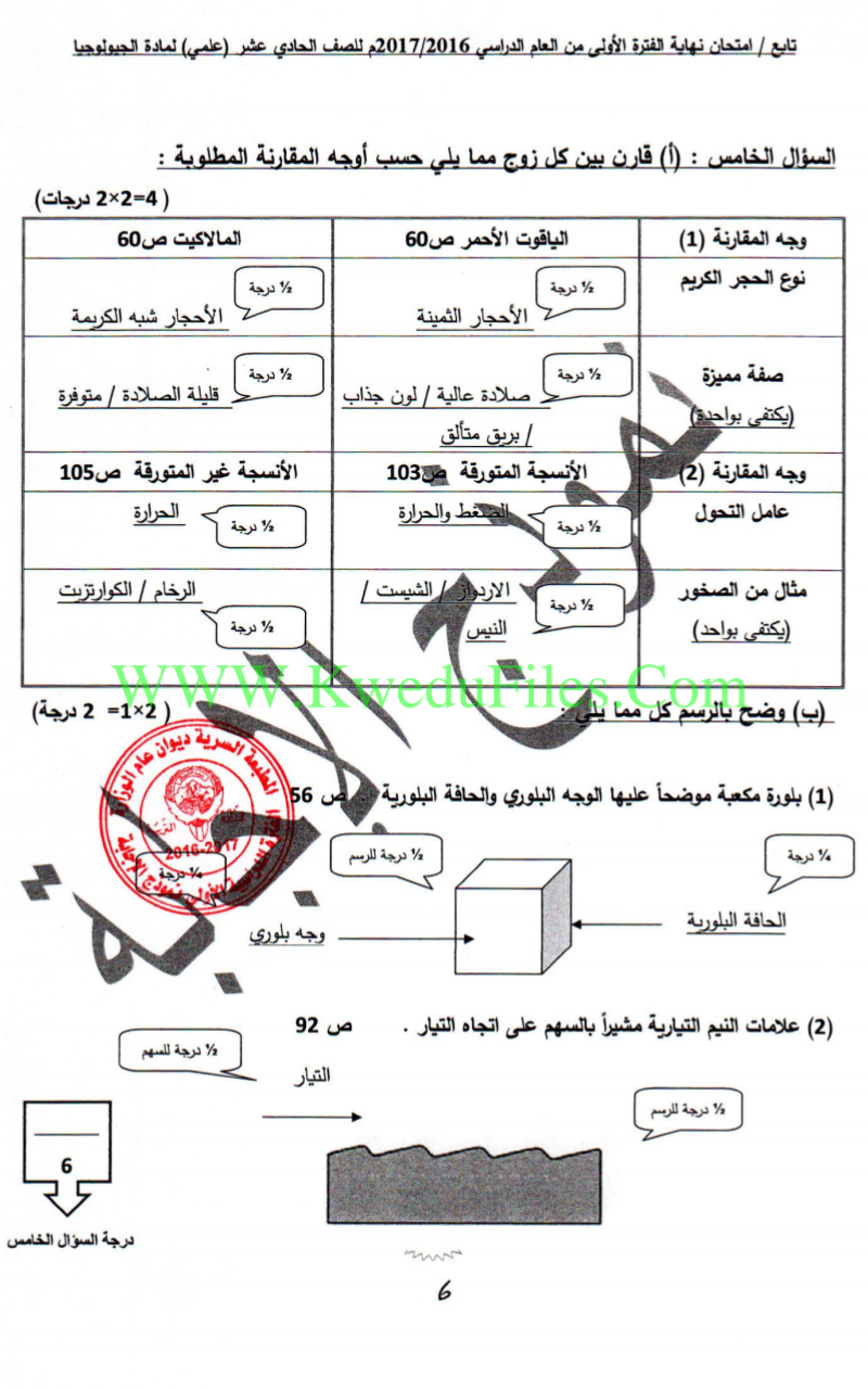 معلومات الملف: نموذج اجابة اختبار في مادة الجيولوجيا للصف الحادي عشر للكورس الاول تتضمن 9اوراق | ||