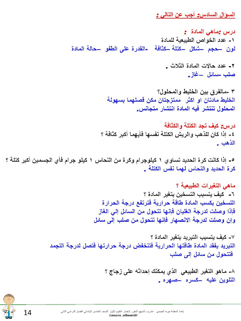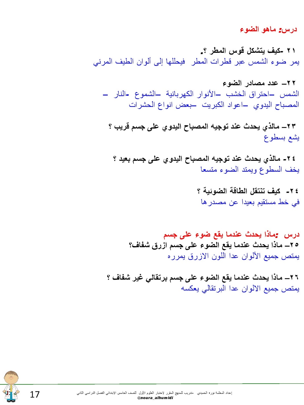 نموذج اجابة, الصف الخامس, علوم, الفصل الثاني, 2017-2018 - المناهج الكويتية