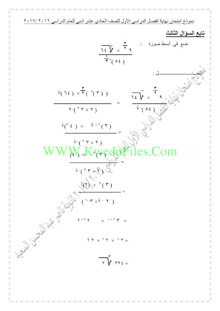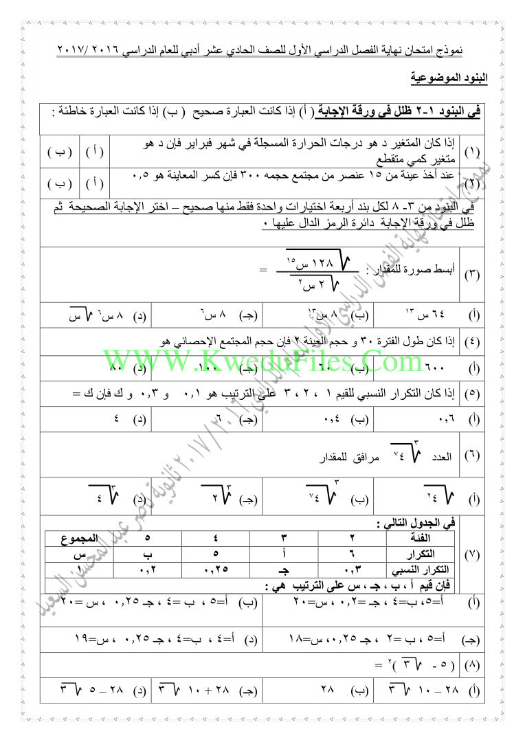 الصف الحادي عشر الأدبي | ||