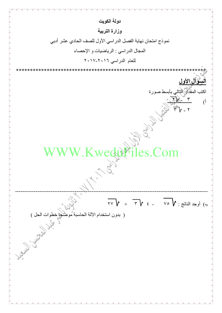 أنت هنا: موقع المناهج ⇦ المناهج الكويتية ⇦ الصف الحادي عشر الأدبي ⇦ إحصاء ⇦ الفصل الأول ⇦ الامتحان النهائي |