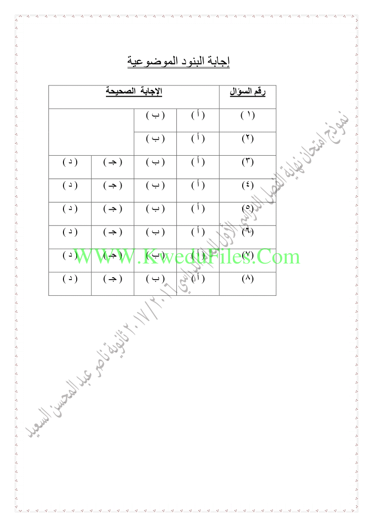 تنويه: المناهج الكويتية هو موقع مجاني وغير رسمي ولا يتطلب اشتراك لتحميل الملفات، لذلك يرجى عدم دفع أي مبلغ أو الاشتراك من أجل تحميل الملفات. | |