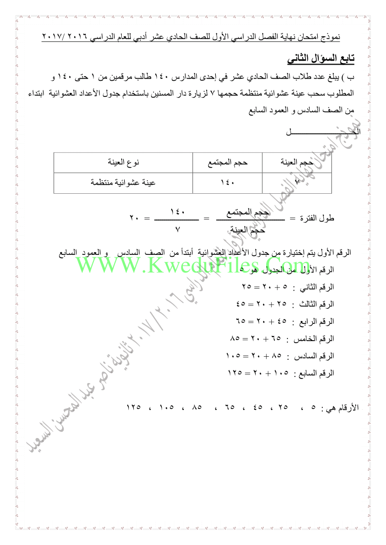 تم إيجاد الملف: نموذج اختبار لنهاية الفترة الاولى في مادة الاحصاء