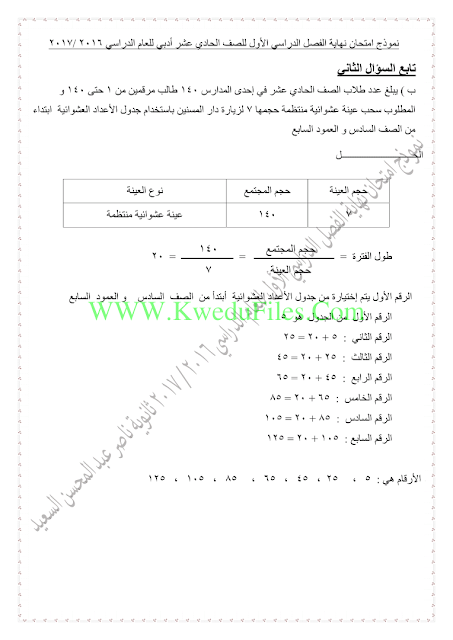 معلومات الملف: 14ورقة في مادة الاحصاء للصف الحادي عشر الادبي للكورس الاول تتضمن نموذج اختبار مفيد جدا" | ||