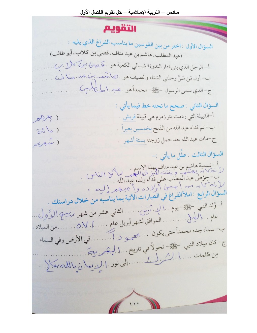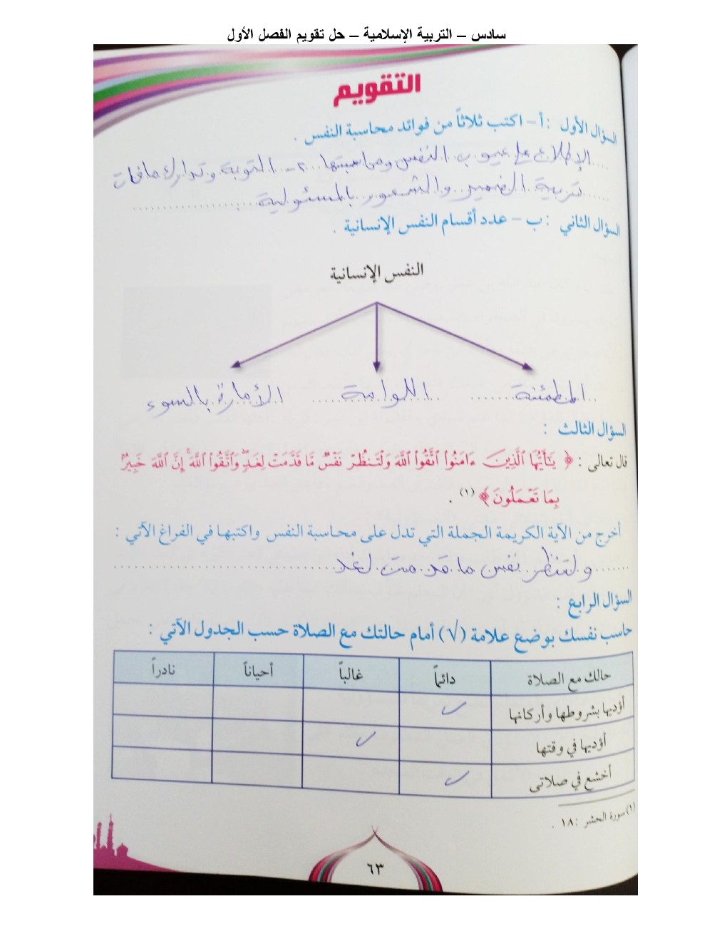 أحدث ملفات الصف السادس, تربية اسلامية, الفصل الأول