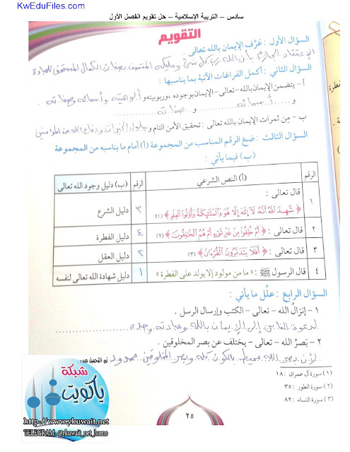 أنت هنا: موقع المناهجالمناهج الكويتية الصف السادس تربية اسلامية الفصل الأول حلول