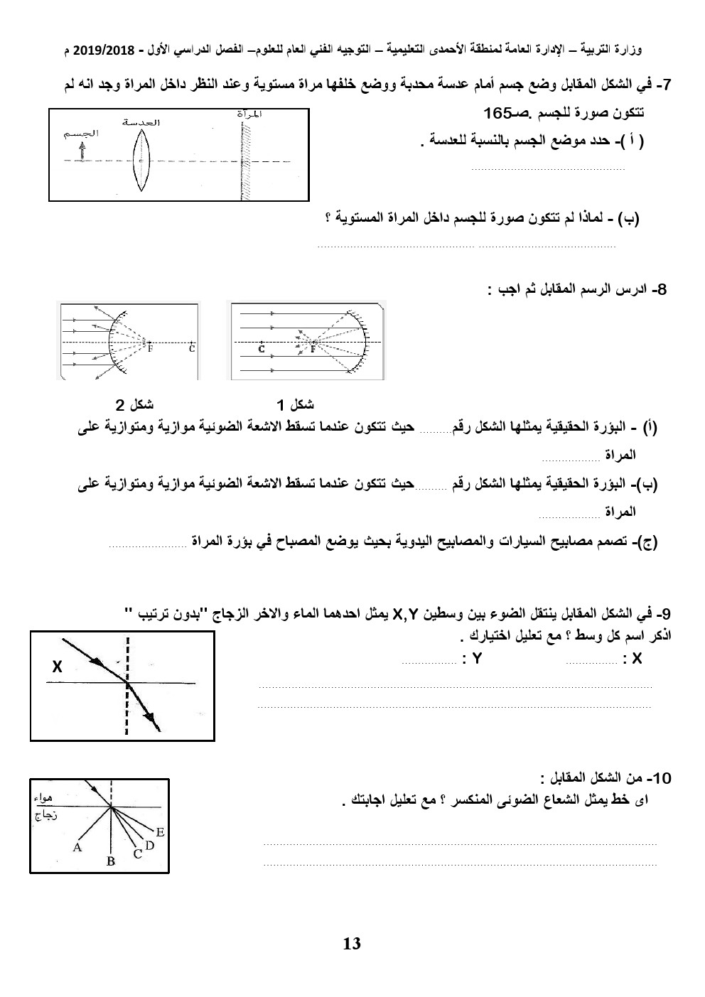بنك اسئلة انعكاس وانكسار الضوء 2018 _ - إعداد: التوجيه الفني للعلوم