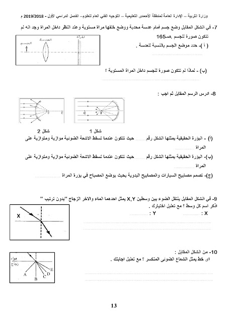 بنك اسئلة انعكاس وانكسار الضوء  2018 _ 2019 للصف الثامن في مادة العلوم - الفصل الدراسي الاول من العام الدراسي 2018-2019