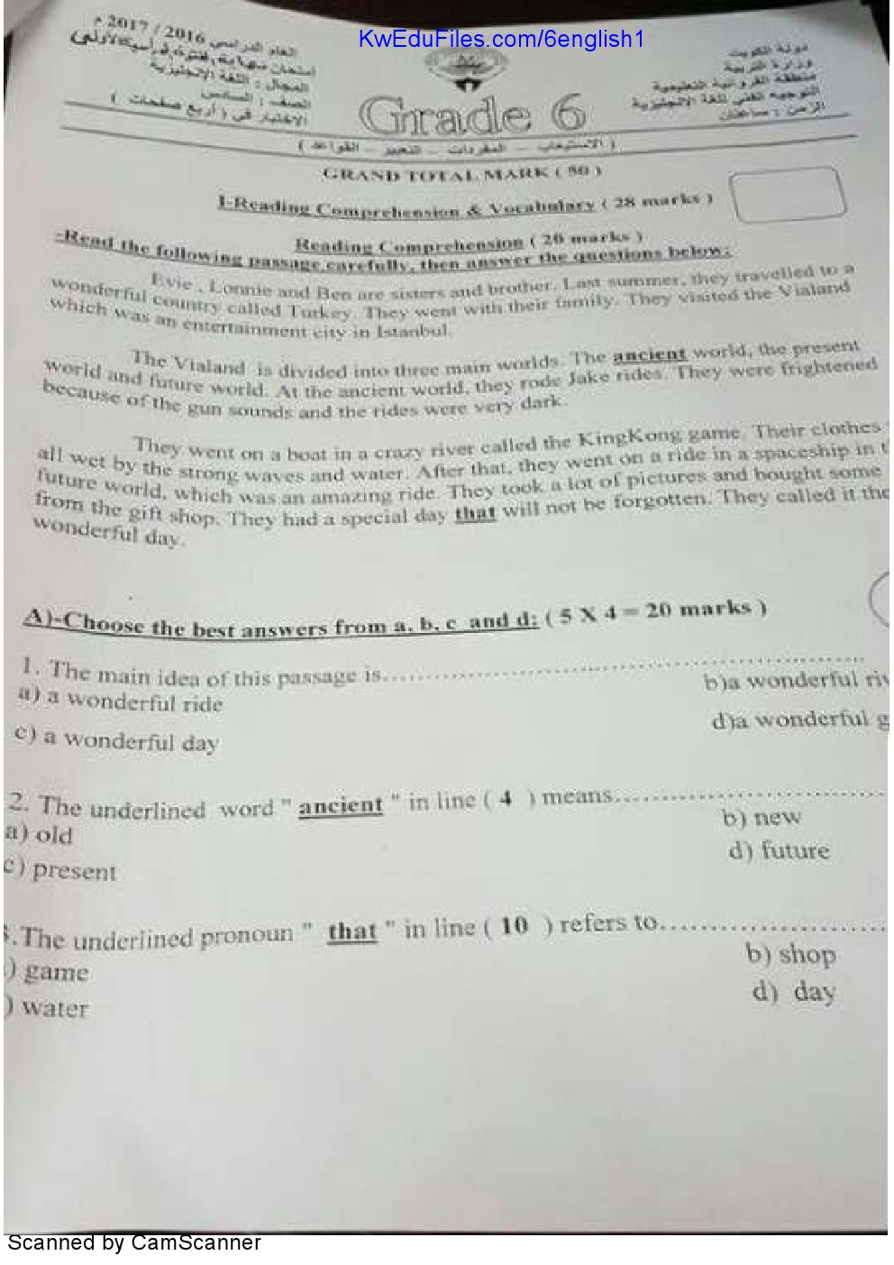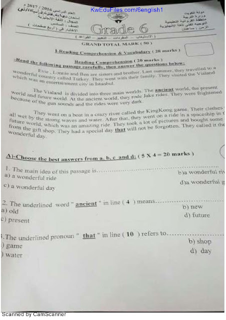 لغة انجليزية للصف السادس - الفصل الاول من العام الدراسي 2018-2019 وذلك وفق المنهاج الكويتي