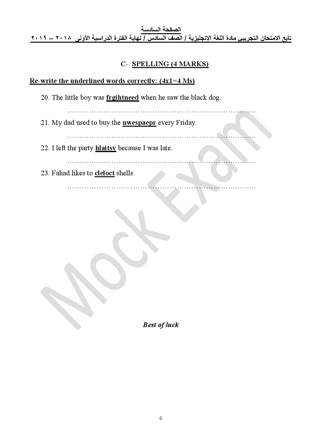 امتحان تجريبي من الفروانية 2018 - إعداد: منطقة الفروانية التعليمية