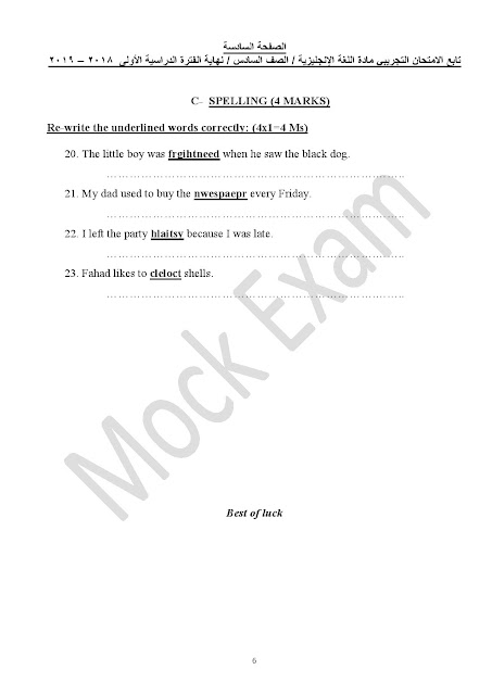 لغة انجليزية للصف السادس - الفصل الاول من العام الدراسي 2018-2019 وذلك وفق المنهاج الكويتي
