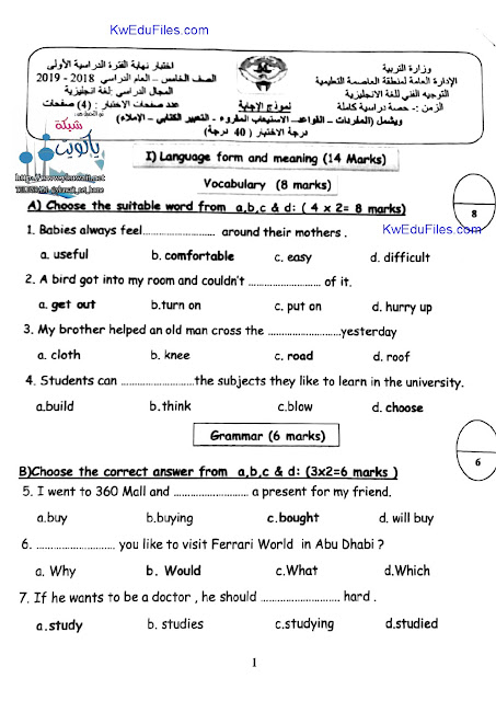 أنت هنا: موقع المناهج ⇦ المناهج الكويتية ⇦ الصف الخامس ⇦ لغة انجليزية ⇦ الفصل الأول ⇦ حلول |