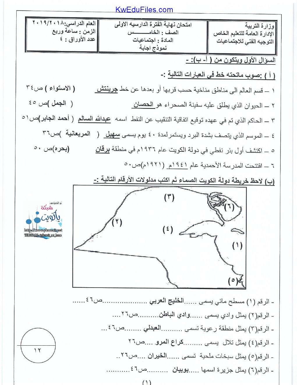 15. نموذج الإجابة في منطقة حولي للعام الدراسي