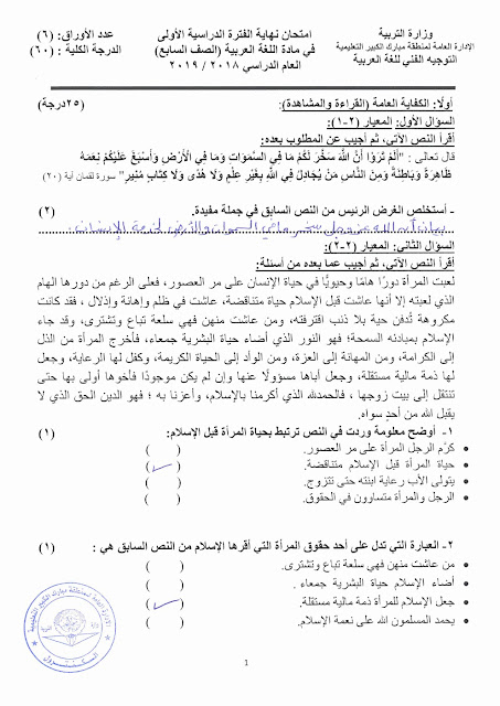 أحدث ملفات الصف السابع, لغة عربية, الفصل الأول