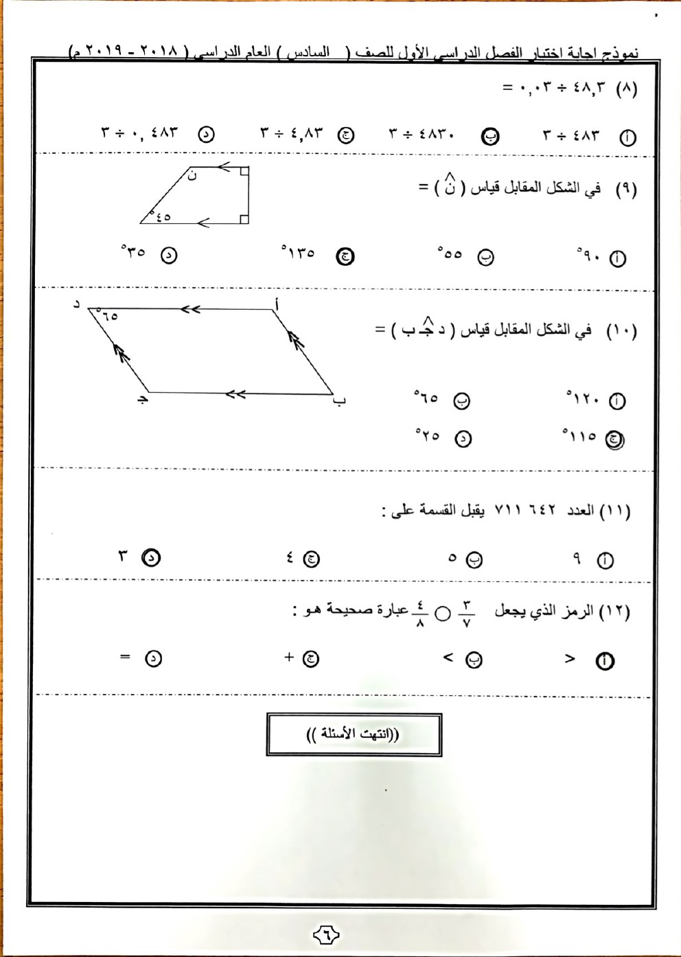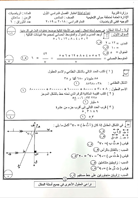 أحدث ملفات الصف السادس, رياضيات, الفصل الأول