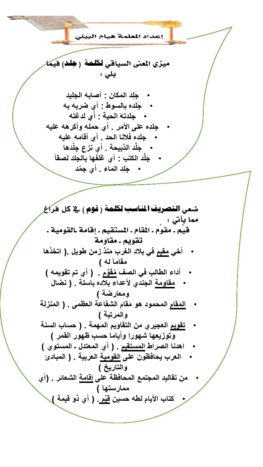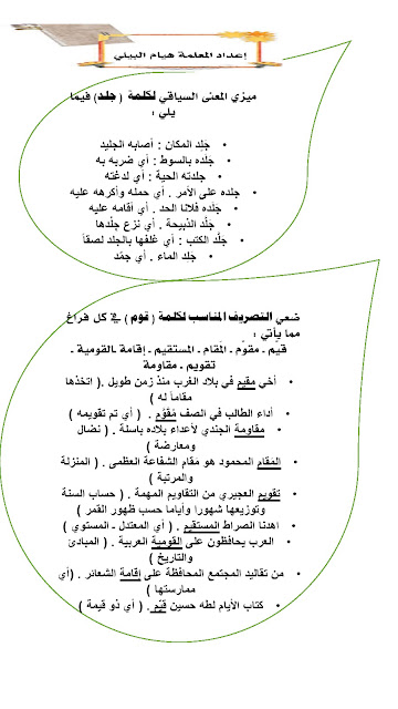 11. لغة عربية, الفصل الأول, 2025-2026, مراجعة على الاختبار القصير الأول