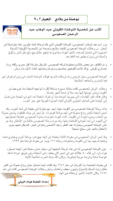 9. نموذج إجابة منطقة الجهراء التعليمية