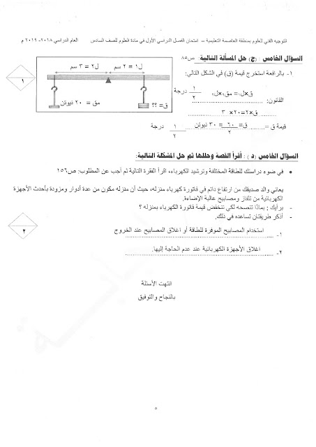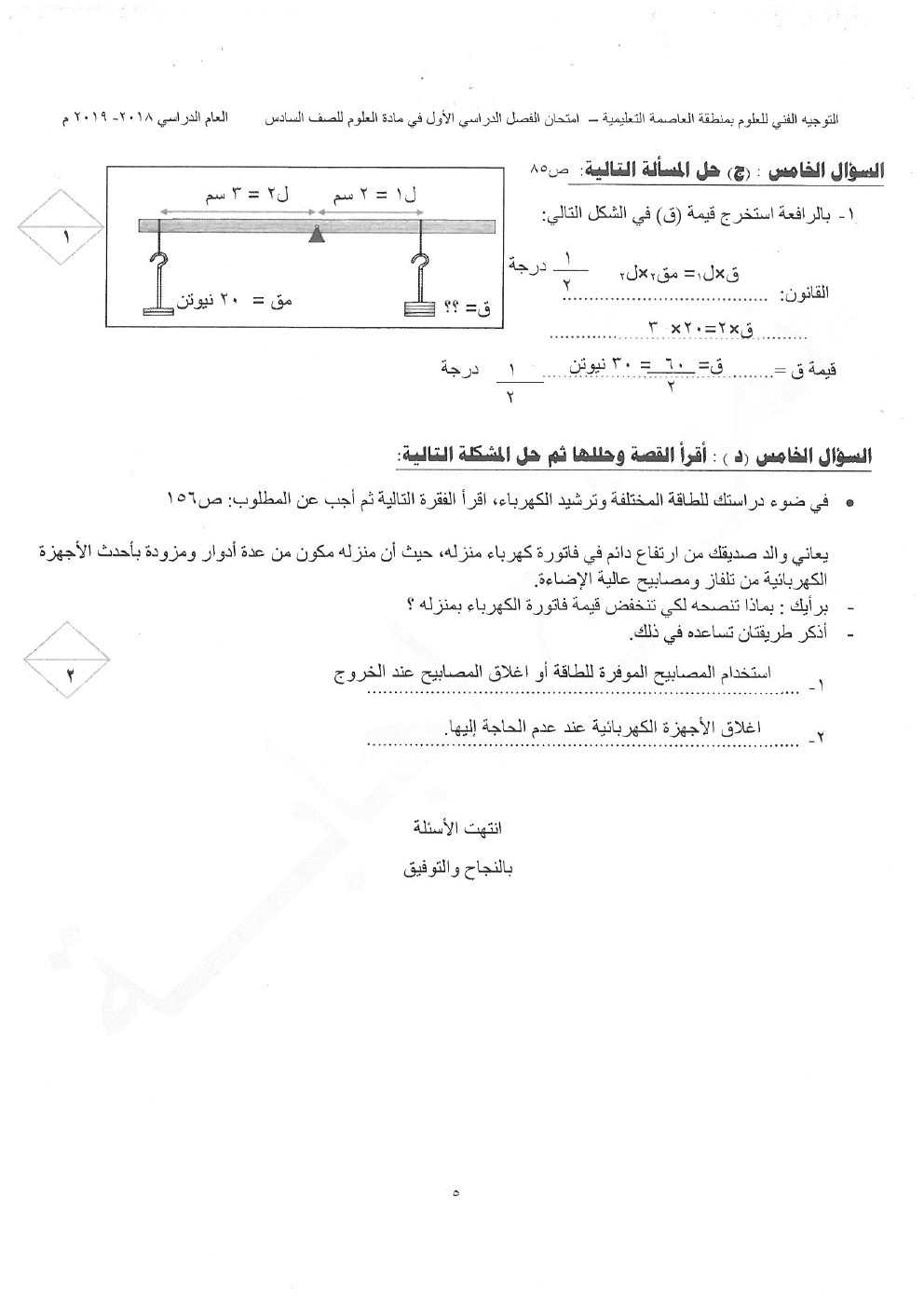 نموذج اجابة العاصمة 2018, منطقة العاصمة التعليمية, الصف السادس, علوم, الفصل الأول, 2018-2019 - المناهج الكويتية