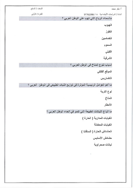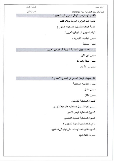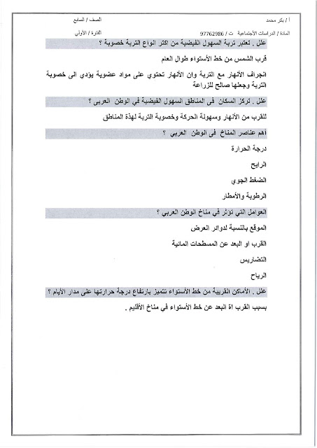 أحدث ملفات الصف السابع, اجتماعيات, الفصل الأول