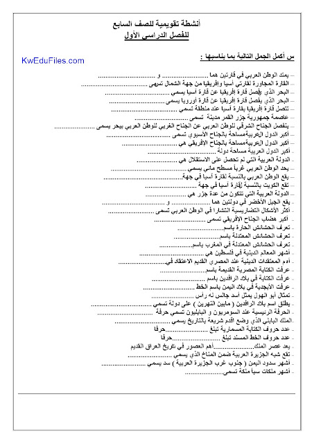3. الصف السابع, لغة انجليزية, أسئلة اختبار تجريبي لمنطقة حولي التعليمية