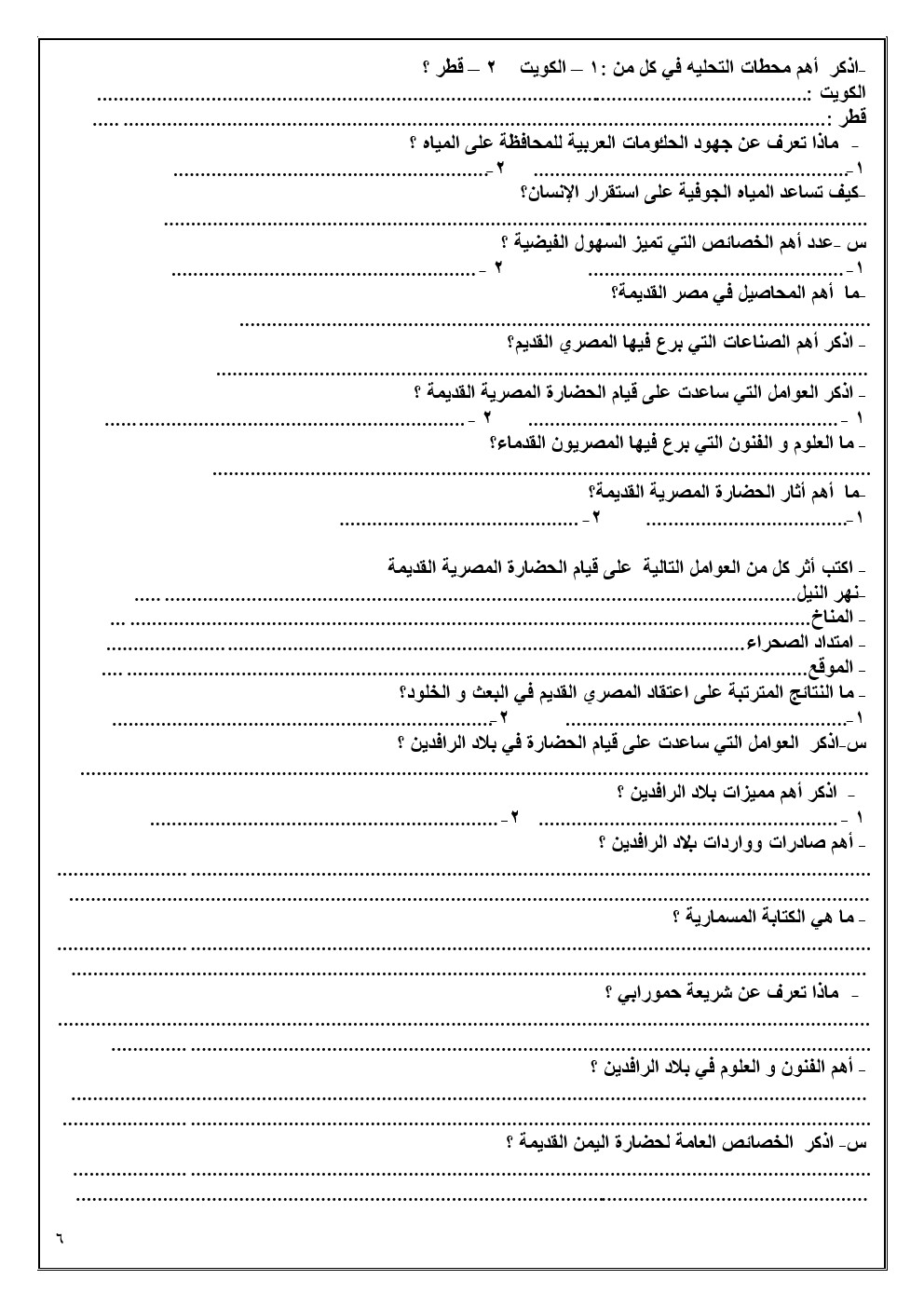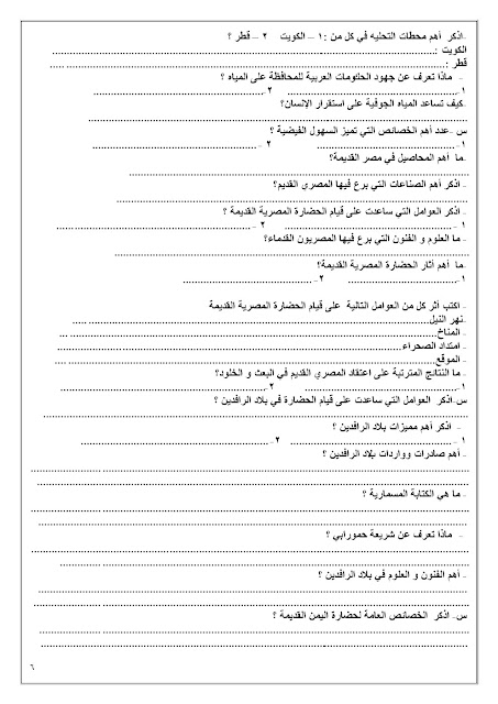 4. الصف السادس, لغة انجليزية, أسئلة اختبار تجريبي لمنطقة حولي التعليمية