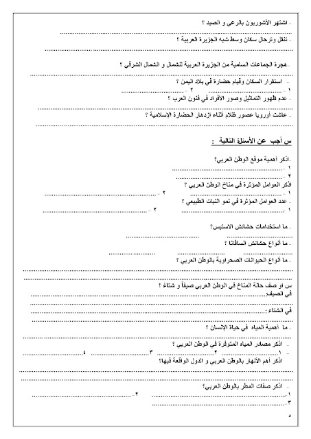 15. بنك أسئلة لمقرر الدراسات الاجتماعية الكويت والوطن العربي