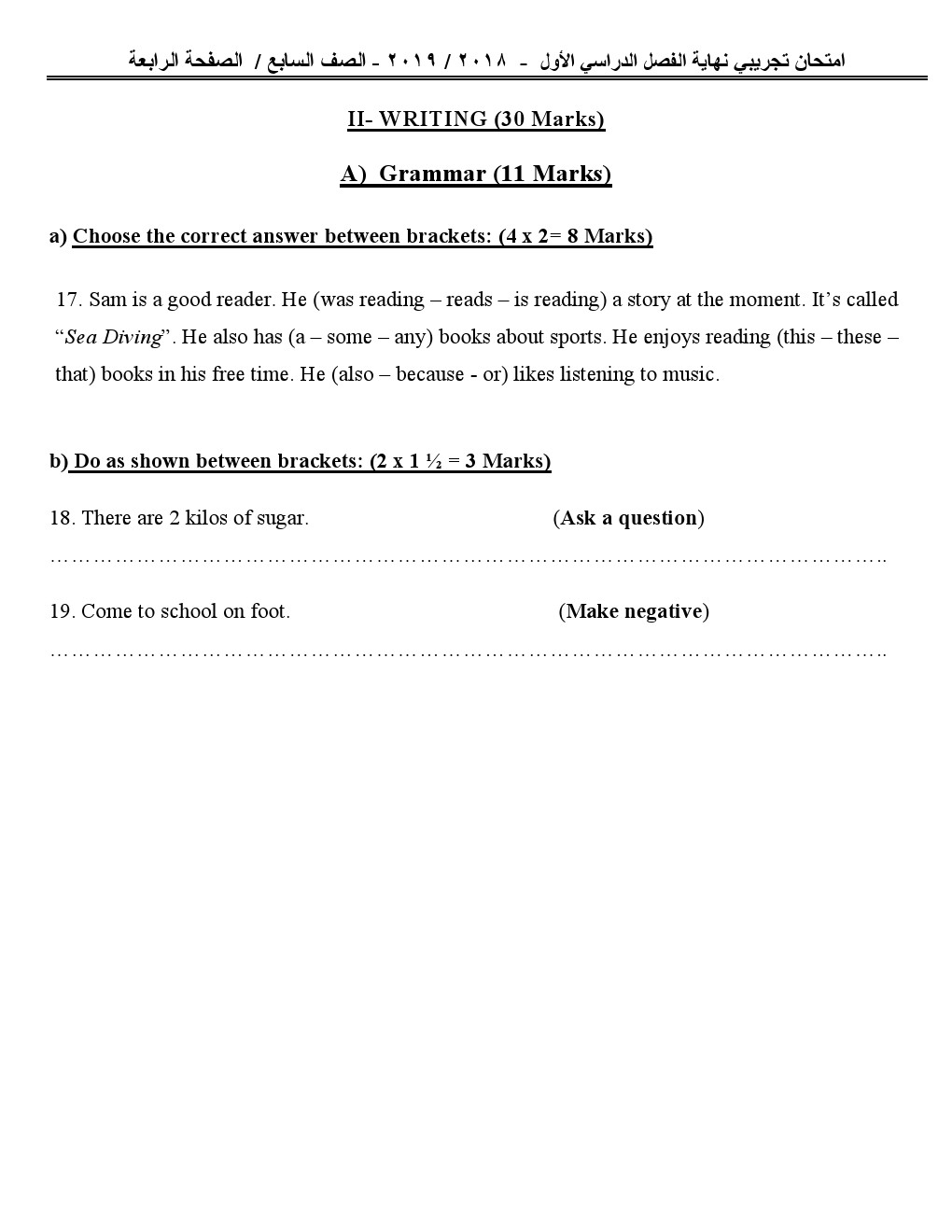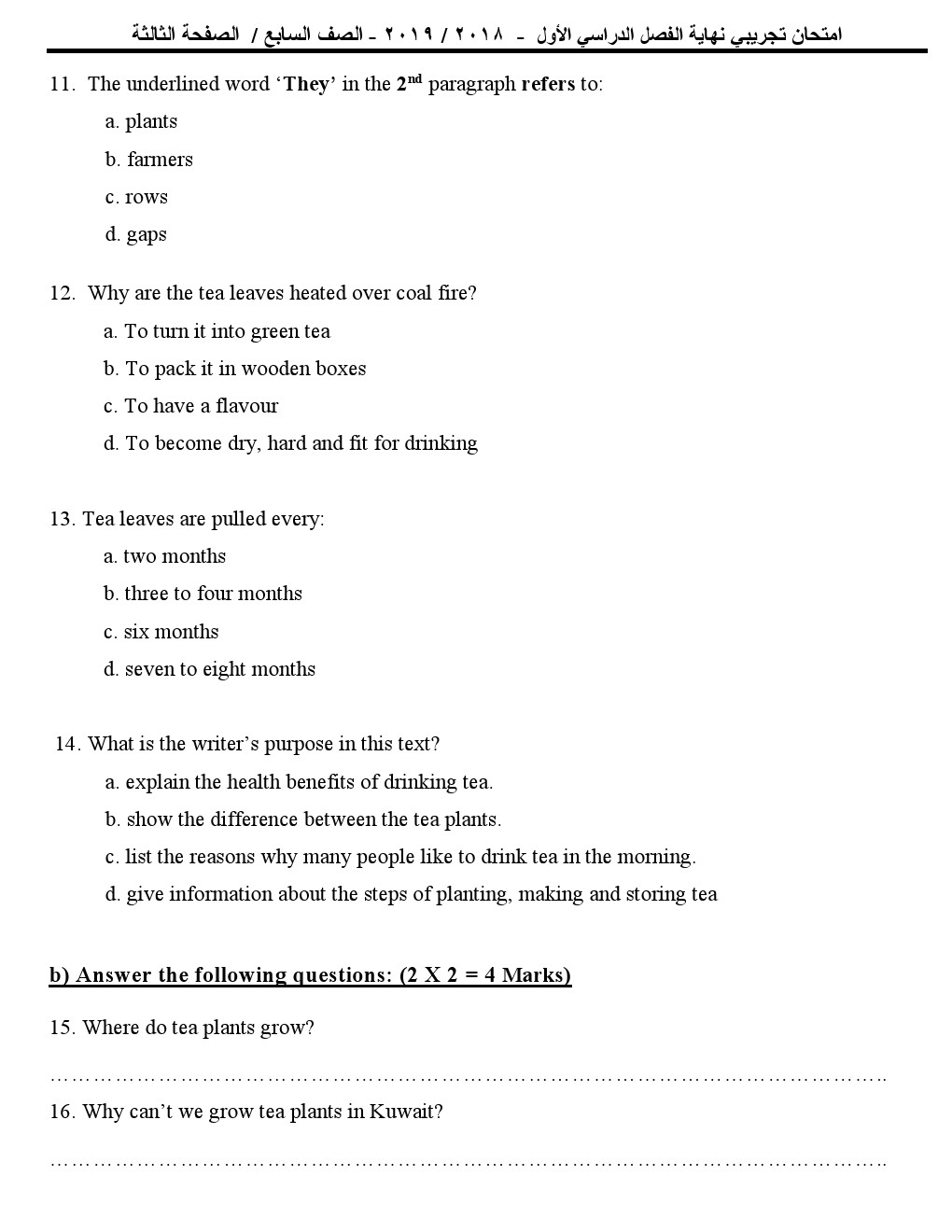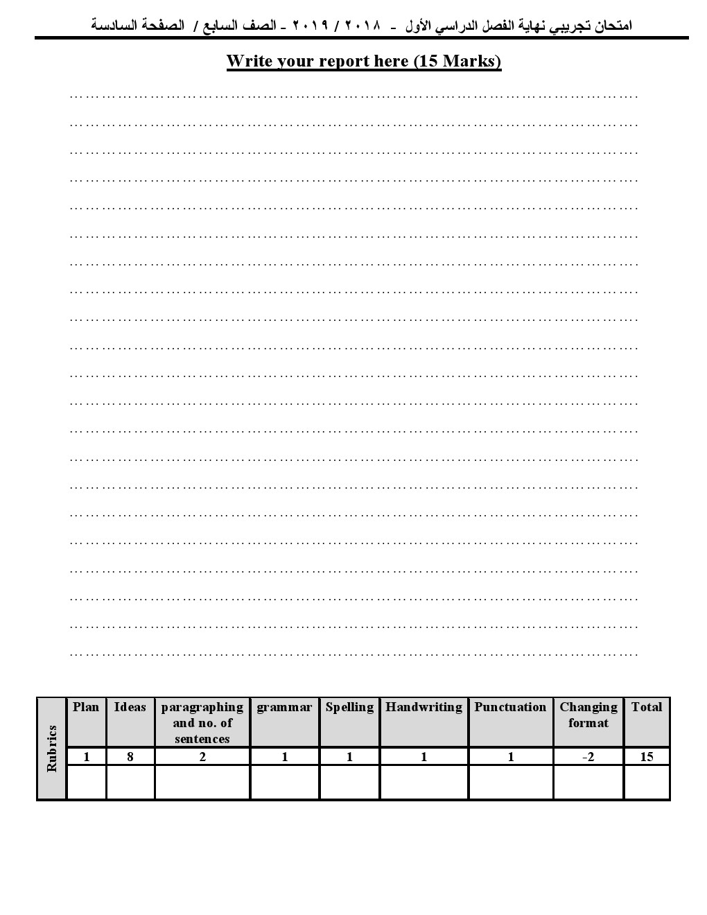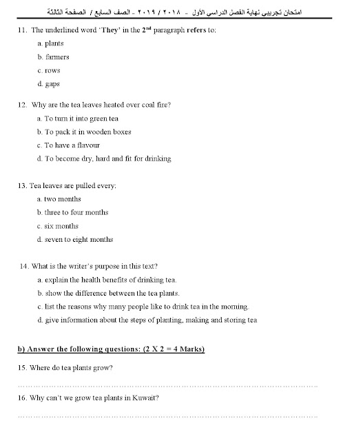 | أنت هنا: موقع المناهج ⇦ المناهج الكويتية ⇦ الصف السابع ⇦ لغة انجليزية ⇦ الفصل الأول ⇦ الامتحان النهائي |