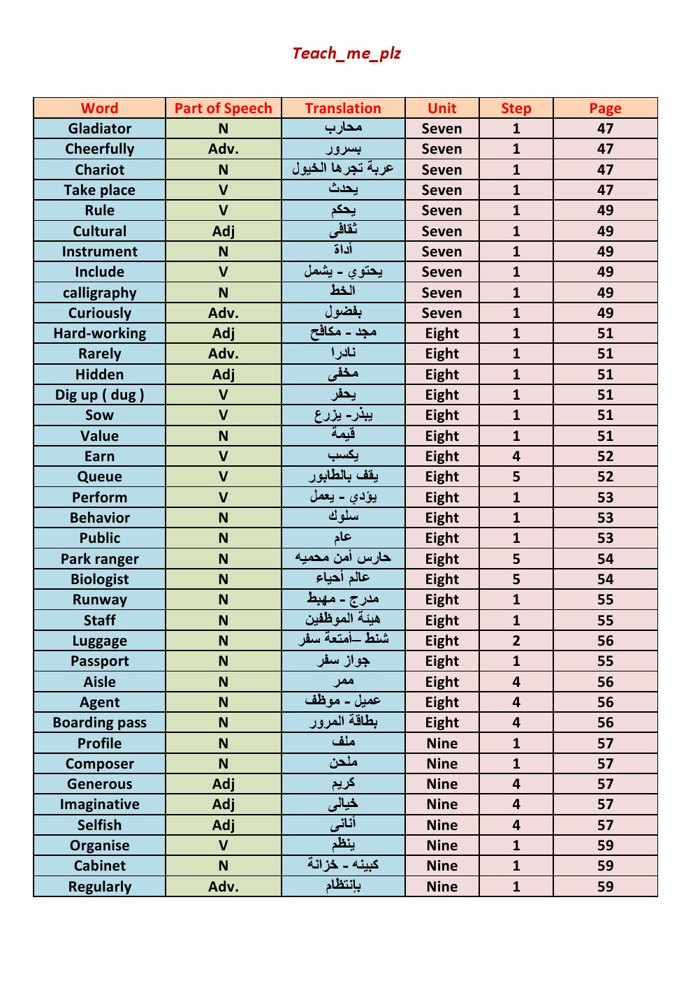 أكثر خمس كلمات زيارة اليوم بحسب: لغة انجليزية - الصف السابع - الفصل الأول